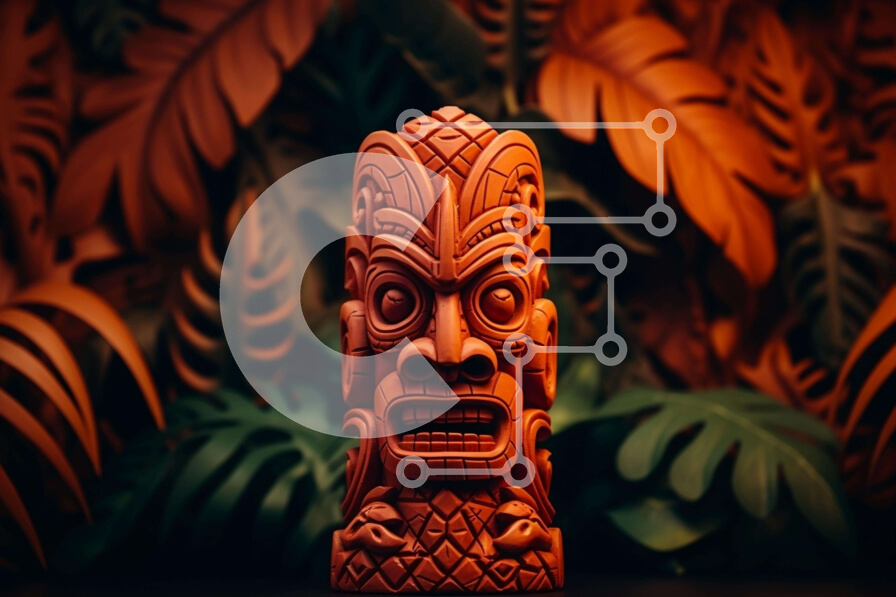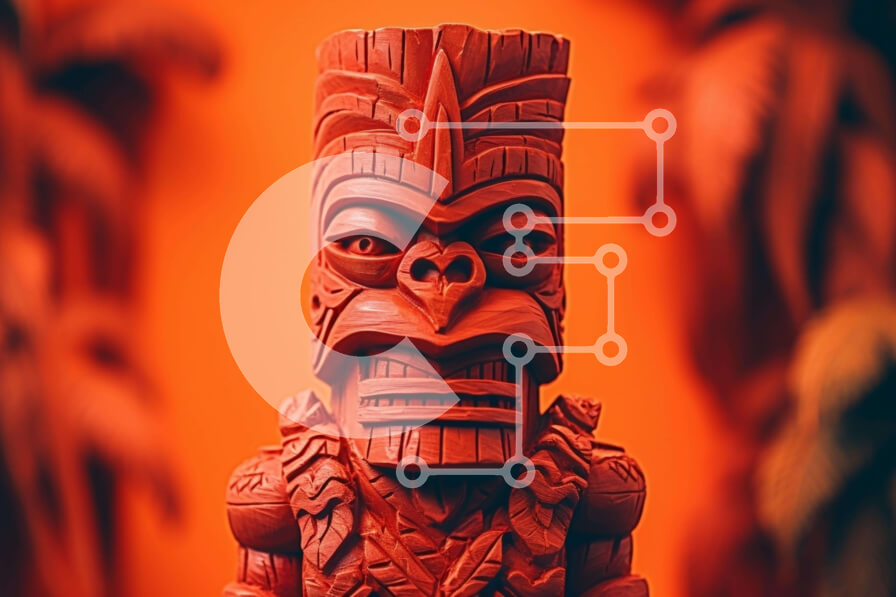 Intra Συλλεκτικό Ξύλινο Παζλ Plywood 4mm - Ξύλινο άγαλμα Tiki σε πορτοκαλί φόντο Σε Ξύλινο Κουτί - Διαστάσεις Puzzle: 10x10 cm – 25 κομμάτια