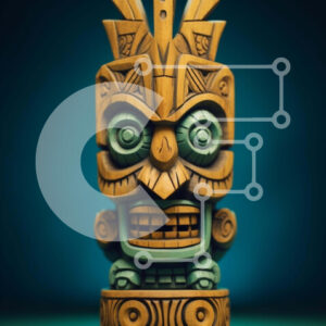 Intra Συλλεκτικό Ξύλινο Παζλ Plywood 4mm - Ξύλινο άγαλμα Tiki σε πράσινο φόντο Σε Ξύλινο Κουτί - Διαστάσεις: 10x10 cm – 25 κομμάτια