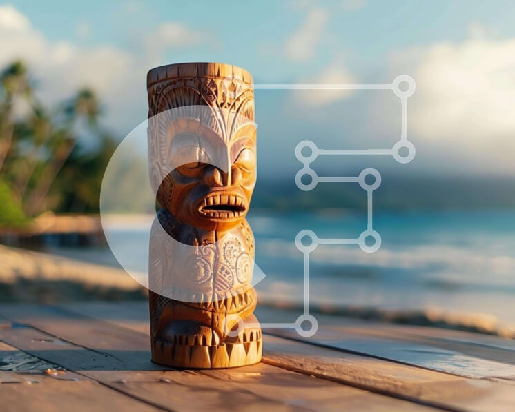 Intra Συλλεκτικό Ξύλινο Παζλ Plywood 4mm - Ξύλινο άγαλμα Tiki κοντά στον ωκεανό Σε Ξύλινο Κουτί - Διαστάσεις: 10x10 cm – 25 κομμάτια