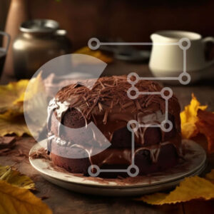 Intra Συλλεκτικό Ξύλινο Παζλ Plywood 4mm - Νόστιμη εικόνα ενός κέικ σοκολάτας με παγωμένο σοκολάτα σε ένα πιάτο με φθινοπωρινά φύλλα στο φόντο Σε Ξύλινο Κουτί - Διαστάσεις: 10x10 cm – 25 κομμάτια