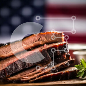Intra Συλλεκτικό Ξύλινο Παζλ Plywood 4mm - Μπάρμπεκιου κρέατα σε ξύλο κοπής με αμερικανική σημαία στο φόντο Σε Ξύλινο Κουτί - Διαστάσεις: 10x10 cm – 25 κομμάτια