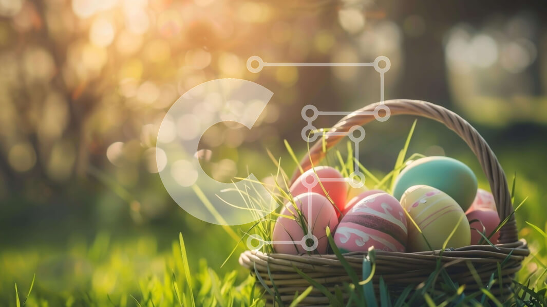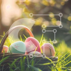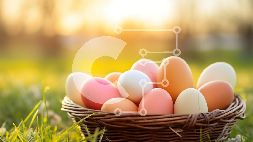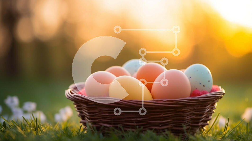 Intra Συλλεκτικό Ξύλινο Παζλ Plywood 4mm - Πολύχρωμα Πασχαλινά αυγά σε ένα καλάθι στο ηλιοβασίλεμα Σε Ξύλινο Κουτί - Διαστάσεις: 10x10 cm – 25 κομμάτια