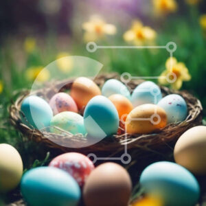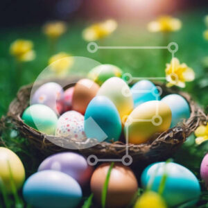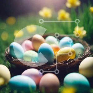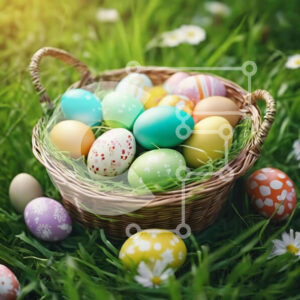 Intra Συλλεκτικό Ξύλινο Παζλ Plywood 4mm - Πολύχρωμα Πασχαλινά αυγά σε ένα καλάθι στο γρασίδι Σε Ξύλινο Κουτί - Διαστάσεις: 10x10 cm – 25 κομμάτια