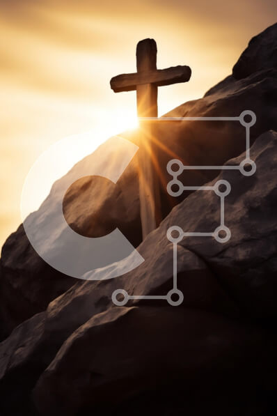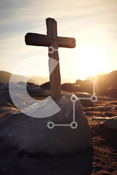 Intra Συλλεκτικό Ξύλινο Παζλ Plywood 4mm - Ξύλινος σταυρός στη βραχώδη προεξοχή στο ηλιοβασίλεμα Σε Ξύλινο Κουτί - Διαστάσεις Puzzle: 10x10 cm – 25 κομμάτια
