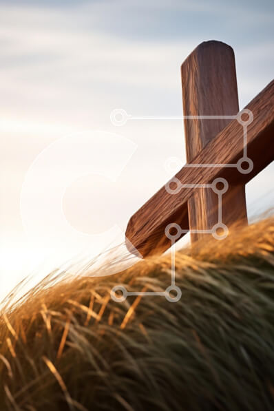 Intra Συλλεκτικό Ξύλινο Παζλ Plywood 4mm - Ξύλινος σταυρός σε χωράφι με γρασίδι Σε Ξύλινο Κουτί - Διαστάσεις Puzzle: 10x10 cm – 25 κομμάτια