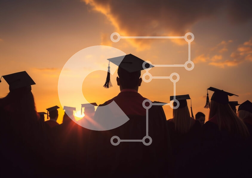 Intra Συλλεκτικό Ξύλινο Παζλ Plywood 4mm - Οι απόφοιτοι σκιαγραφούνται ενάντια στη δύση του ηλίου Σε Ξύλινο Κουτί - Διαστάσεις Puzzle: 10x10 cm – 25 κομμάτια