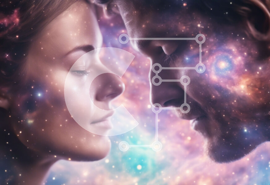 Intra Συλλεκτικό Ξύλινο Παζλ Plywood 4mm - Οικείο ζευγάρι σε ένα αφηρημένο υπόβαθρο γαλαξία Σε Ξύλινο Κουτί - Διαστάσεις Puzzle: 10x10 cm – 25 κομμάτια