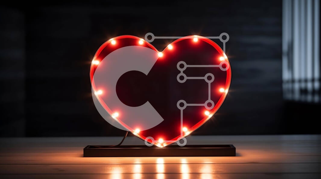 Intra Συλλεκτικό Ξύλινο Παζλ Plywood 4mm - Οθόνη φωτός σε σχήμα καρδιάς σε ξύλινο τραπέζι Σε Ξύλινο Κουτί - Διαστάσεις: 10x10 cm – 25 κομμάτια