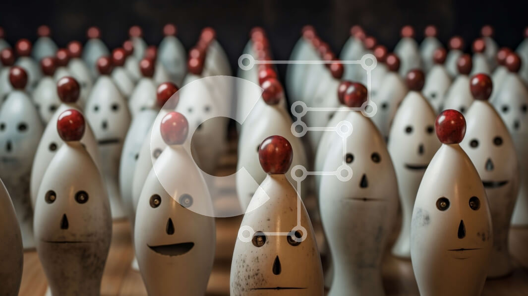 Intra Συλλεκτικό Ξύλινο Παζλ Plywood 4mm - Ομάδα καρφίτσες μπόουλινγκ με κόκκινα μάτια και μύτη Σε Ξύλινο Κουτί - Διαστάσεις Puzzle: 10x10 cm – 25 κομμάτια