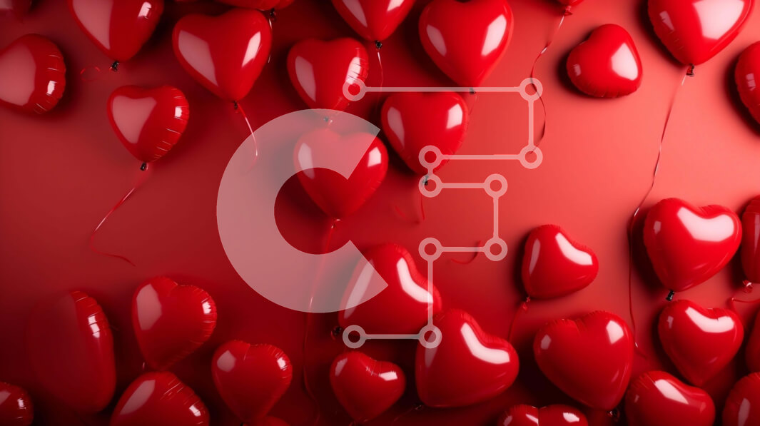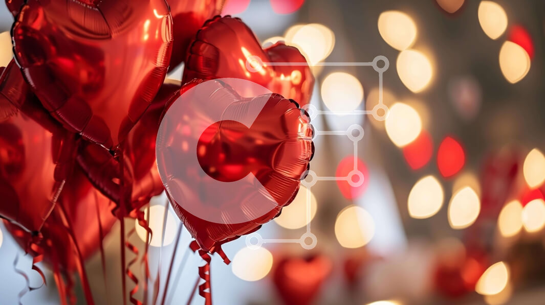 Intra Συλλεκτικό Ξύλινο Παζλ Plywood 4mm - Ομάδα κόκκινων μπαλονιών σε σχήμα καρδιάς που επιπλέουν στον αέρα Σε Ξύλινο Κουτί - Διαστάσεις Puzzle: 10x10 cm – 25 κομμάτια