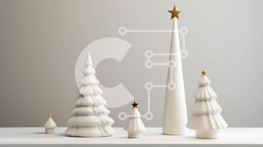 Intra Συλλεκτικό Ξύλινο Παζλ Plywood 4mm - Ομάδα λευκών κεραμικών χριστουγεννιάτικων δέντρων με χρυσά αστέρια Σε Ξύλινο Κουτί - Διαστάσεις: 10x10 cm – 25 κομμάτια