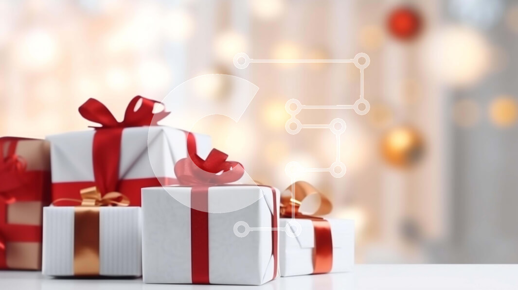 Intra Συλλεκτικό Ξύλινο Παζλ Plywood 4mm - Ομάδα λευκών κουτιών δώρων με κόκκινες κορδέλες και φιόγκους σε τραπέζι με φώτα Bokeh Σε Ξύλινο Κουτί - Διαστάσεις: 10x10 cm – 25 κομμάτια
