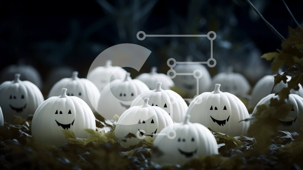 Intra Συλλεκτικό Ξύλινο Παζλ Plywood 4mm - Ομάδα λευκών κολοκύθες με χαμογελαστά πρόσωπα σε σκούρο φόντο Σε Ξύλινο Κουτί - Διαστάσεις Puzzle: 10x10 cm – 25 κομμάτια