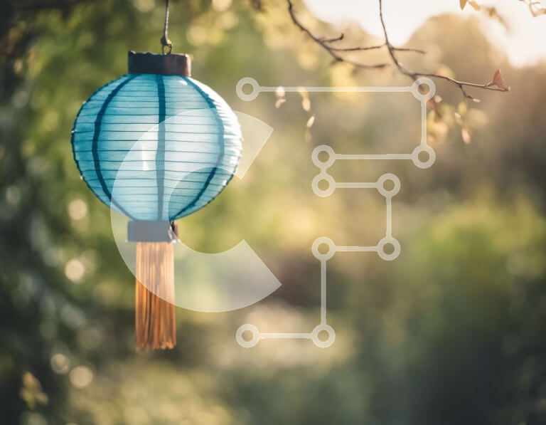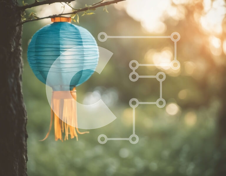 Intra Συλλεκτικό Ξύλινο Παζλ Plywood 4mm - Μπλε χάρτινο φανάρι που κρέμεται από ένα κλαδί δέντρου σε έναν κήπο Σε Ξύλινο Κουτί - Διαστάσεις: 10x10 cm – 25 κομμάτια