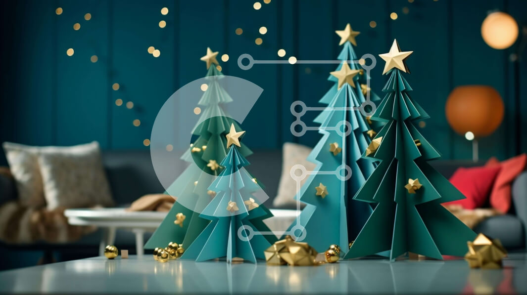 Intra Συλλεκτικό Ξύλινο Παζλ Plywood 4mm - Μπλε χριστουγεννιάτικα δέντρα σε ένα τραπέζι στο σαλόνι Σε Ξύλινο Κουτί - Διαστάσεις: 10x10 cm – 25 κομμάτια