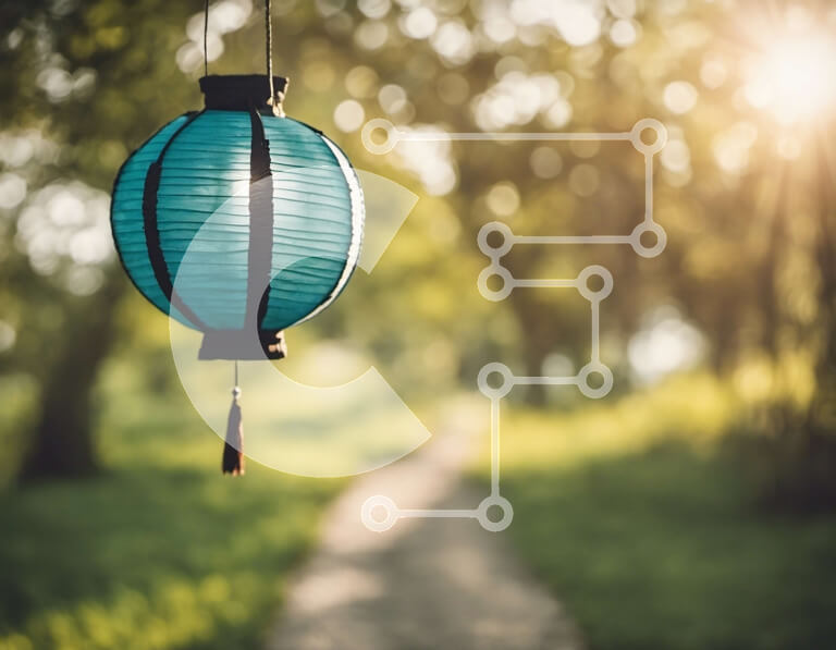 Intra Συλλεκτικό Ξύλινο Παζλ Plywood 4mm - Μπλε χάρτινο φανάρι σε ένα πράσινο δάσος Σε Ξύλινο Κουτί - Διαστάσεις: 10x10 cm – 25 κομμάτια