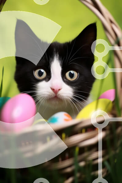 Intra Συλλεκτικό Ξύλινο Παζλ Plywood 4mm - Περίεργη γάτα στο καλάθι αυγών του Πάσχα Σε Ξύλινο Κουτί - Διαστάσεις: 10x10 cm – 25 κομμάτια