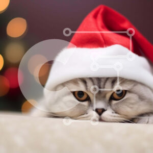 Intra Συλλεκτικό Ξύλινο Παζλ Plywood 4mm - Περίεργη γκρίζα γάτα με καπέλο Άγιου Βασίλη Σε Ξύλινο Κουτί - Διαστάσεις: 10x10 cm – 25 κομμάτια
