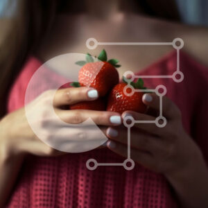 Intra Συλλεκτικό Ξύλινο Παζλ Plywood 4mm - Όμορφη εικόνα γυναίκας που κρατά δύο φράουλες Σε Ξύλινο Κουτί - Διαστάσεις: 10x10 cm – 25 κομμάτια