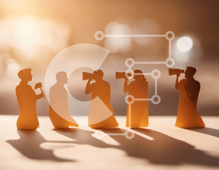 Intra Συλλεκτικό Ξύλινο Παζλ Plywood 4mm - Ομάδα σκιαγραφημένων ανθρώπων που κρατούν τα μεγάφωνα Σε Ξύλινο Κουτί - Διαστάσεις Puzzle: 10x10 cm – 25 κομμάτια