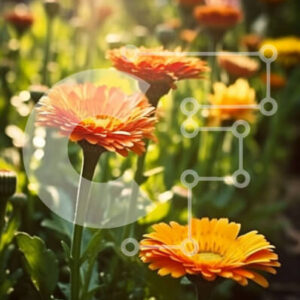 Intra Συλλεκτικό Ξύλινο Παζλ Plywood 4mm - Όμορφη εικόνα πορτοκαλί λουλουδιού μαργαρίτας με πράσινα φύλλα Σε Ξύλινο Κουτί - Διαστάσεις: 10x10 cm – 25 κομμάτια