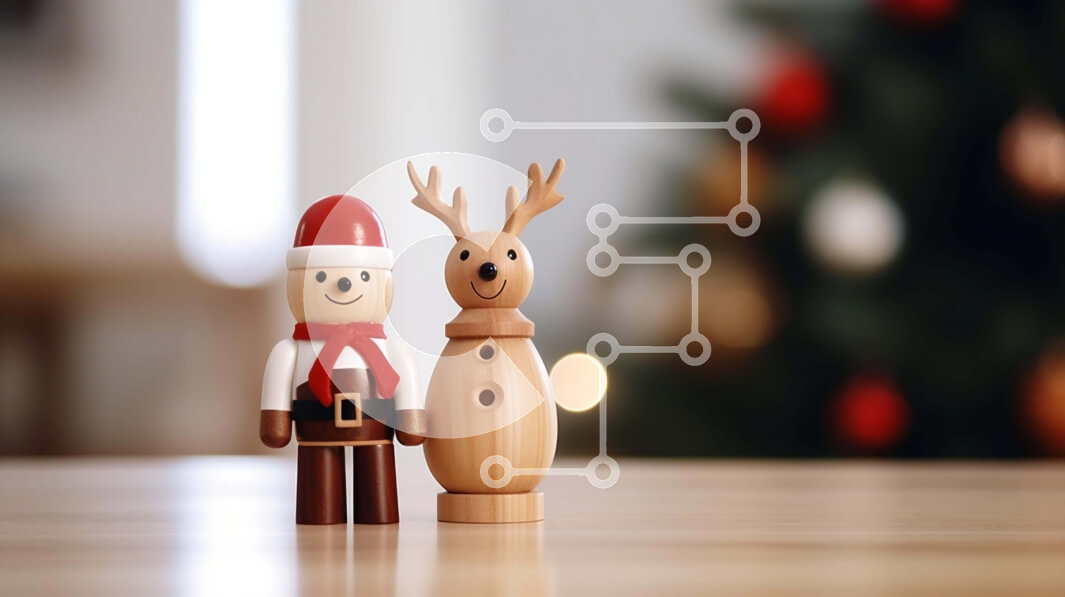 Intra Συλλεκτικό Ξύλινο Παζλ Plywood 4mm - Ξύλινος τάρανδος και φιγούρα Άγιου Βασίλη που γιορτάζει τα Χριστούγεννα Σε Ξύλινο Κουτί - Διαστάσεις: 10x10 cm – 25 κομμάτια