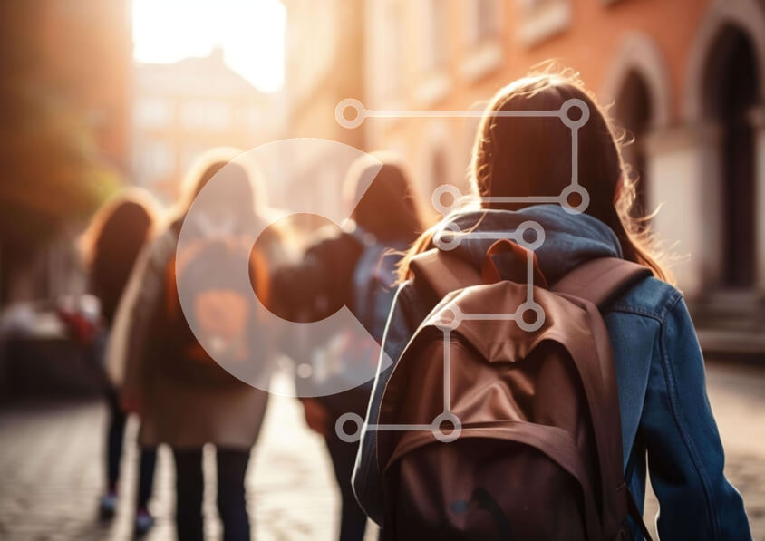 Intra Συλλεκτικό Ξύλινο Παζλ Plywood 4mm - Ομάδα Φοιτητών που περπατούν στην Πλακόστρωτη οδό Σε Ξύλινο Κουτί - Διαστάσεις Puzzle: 10x10 cm – 25 κομμάτια