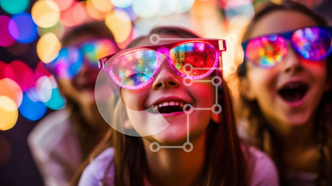 Intra Συλλεκτικό Ξύλινο Παζλ Plywood 4mm - Ομάδα τριών νεαρών κοριτσιών που φοράνε πολύχρωμα γυαλιά και χαμογελούν Σε Ξύλινο Κουτί - Διαστάσεις Puzzle: 10x10 cm – 25 κομμάτια
