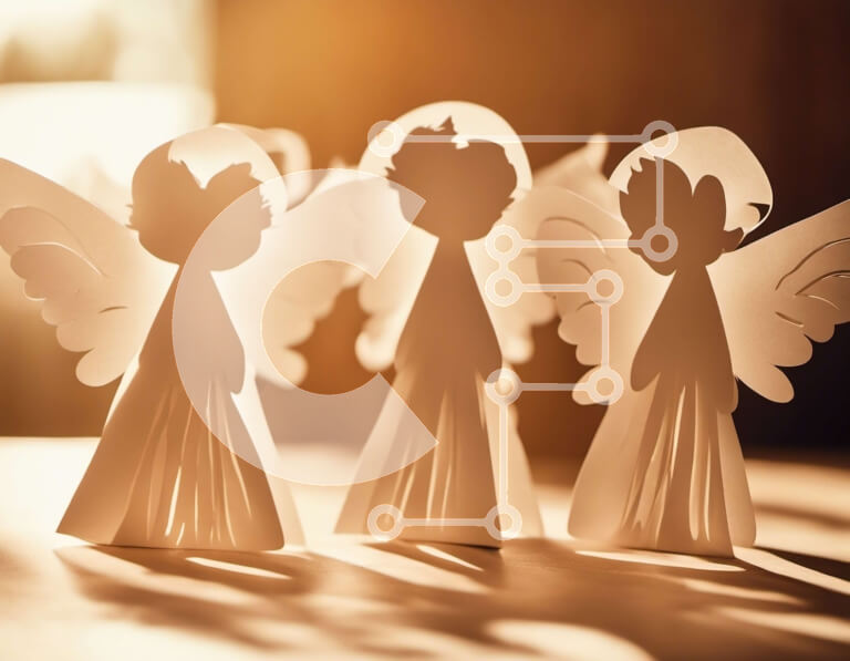 Intra Συλλεκτικό Ξύλινο Παζλ Plywood 4mm - Ομάδα τριών χάρτινων αγγέλων με φωτοστέφανα και απλωμένα φτερά Σε Ξύλινο Κουτί - Διαστάσεις Puzzle: 10x10 cm – 25 κομμάτια