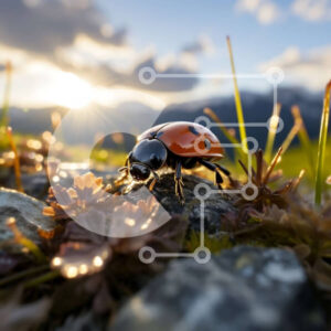 Intra Συλλεκτικό Ξύλινο Παζλ Plywood 4mm - Όμορφη εικόνα της πασχαλίτσας στο γρασίδι στο λιβάδι με το ηλιοβασίλεμα του βουνού Σε Ξύλινο Κουτί - Διαστάσεις: 10x10 cm – 25 κομμάτια