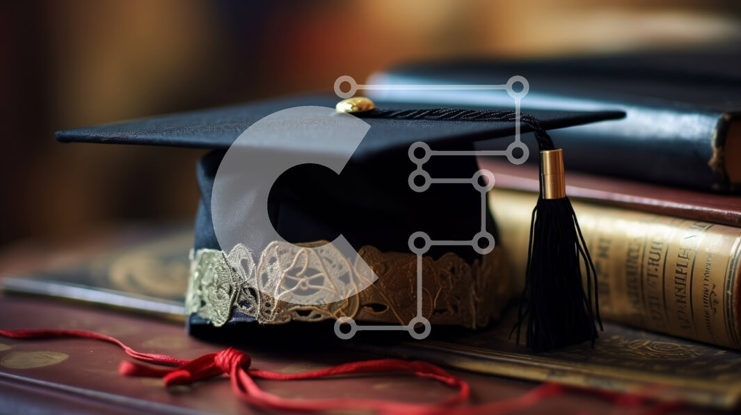 Intra Συλλεκτικό Ξύλινο Παζλ Plywood 4mm - Νοσταλγική εικόνα του καπακιού αποφοίτησης στο σωρό από σκονισμένα βιβλία Σε Ξύλινο Κουτί - Διαστάσεις Puzzle: 10x10 cm – 25 κομμάτια