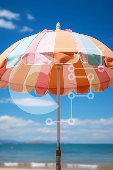 Intra Συλλεκτικό Ξύλινο Παζλ Plywood 4mm - Όμορφη εικόνα της πολύχρωμης ομπρέλας παραλίας στο Sunny Beach Σε Ξύλινο Κουτί - Διαστάσεις Puzzle: 10x10 cm – 25 κομμάτια