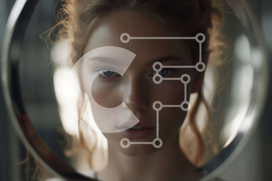 Intra Συλλεκτικό Ξύλινο Παζλ Plywood 4mm - Όμορφη γυναίκα που κοιτάζει στον καθρέφτη με ουδέτερη έκφραση Σε Ξύλινο Κουτί - Διαστάσεις Puzzle: 10x10 cm – 25 κομμάτια