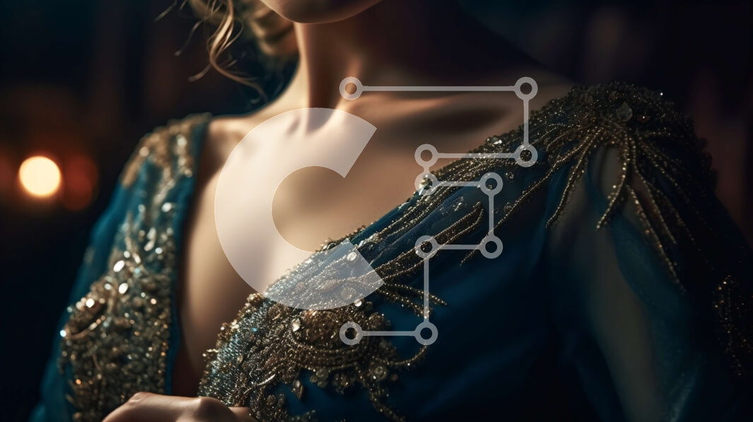 Intra Συλλεκτικό Ξύλινο Παζλ Plywood 4mm - Όμορφη γυναίκα με μπλε φόρεμα με χρυσό κέντημα και διαμαντένια σκουλαρίκια σε δωμάτιο με χαμηλό φωτισμό Σε Ξύλινο Κουτί - Διαστάσεις Puzzle: 10x10 cm – 25 κομμάτια