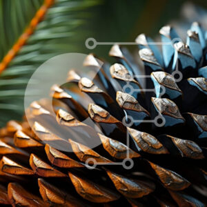 Intra Συλλεκτικό Ξύλινο Παζλ Plywood 4mm - Όμορφη κοντινή φωτογραφία ενός κουκουνάρι σε ζωηρά μπλε και πορτοκαλί χρώματα Σε Ξύλινο Κουτί - Διαστάσεις: 10x10 cm – 25 κομμάτια