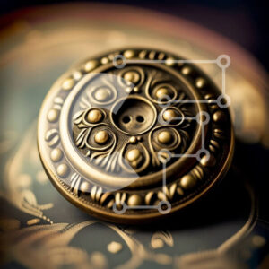 Intra Συλλεκτικό Ξύλινο Παζλ Plywood 4mm - Όμορφη κοντινή φωτογραφία ενός επιχρυσωμένου κουμπιού με περίπλοκα σχέδια Σε Ξύλινο Κουτί - Διαστάσεις: 10x10 cm – 25 κομμάτια