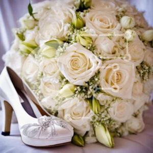 Intra Συλλεκτικό Ξύλινο Παζλ Plywood 4mm - Μπουκέτο με λευκά τριαντάφυλλα και παπούτσια γάμου Σε Ξύλινο Κουτί - Διαστάσεις: 10x10 cm – 25 κομμάτια