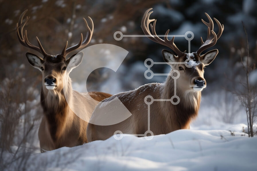 Intra Συλλεκτικό Ξύλινο Παζλ Plywood 4mm - Όμορφη εικόνα δύο αρσενικών ελαφιών στο χιόνι Σε Ξύλινο Κουτί - Διαστάσεις: 10x10 cm – 25 κομμάτια