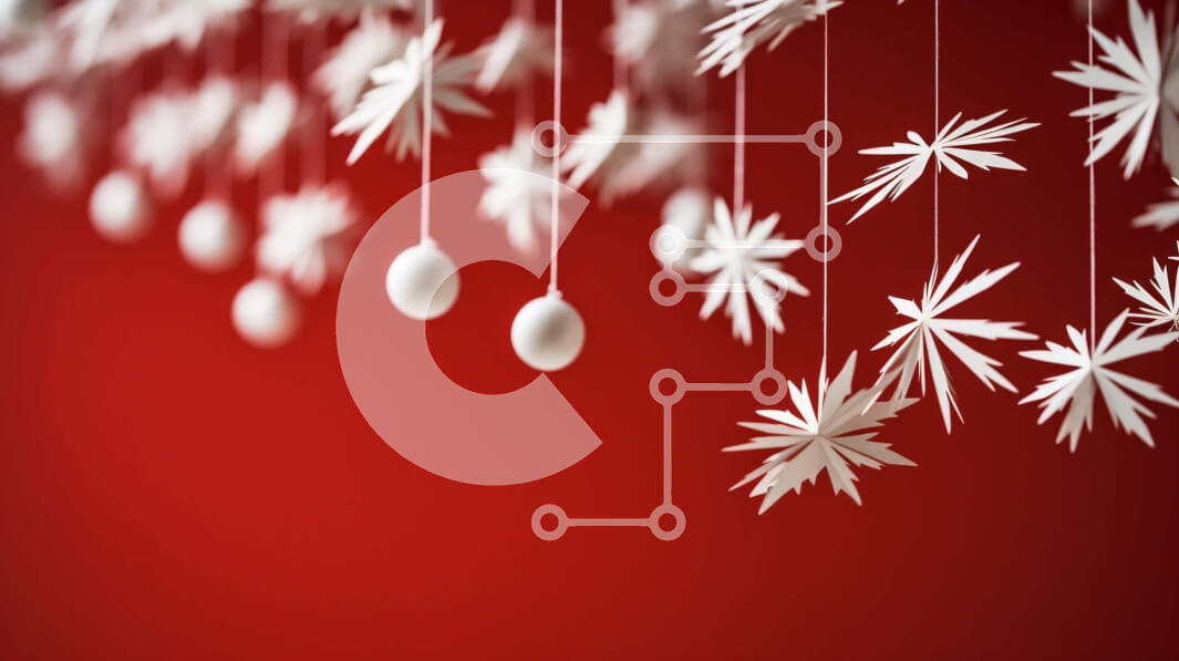 Intra Συλλεκτικό Ξύλινο Παζλ Plywood 4mm - Ομάδα νιφάδων χιονιού από Λευκή Βίβλο που κρέμεται σε κόκκινο φόντο Σε Ξύλινο Κουτί - Διαστάσεις Puzzle: 10x10 cm – 25 κομμάτια