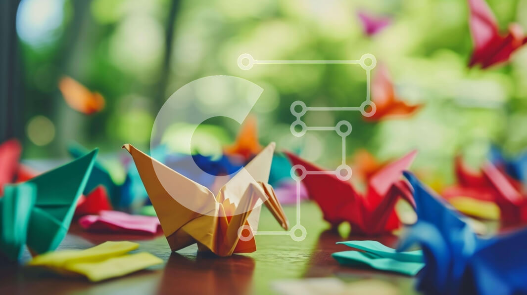Intra Συλλεκτικό Ξύλινο Παζλ Plywood 4mm - Πολύχρωμοι γερανοί Origami στο τραπέζι Σε Ξύλινο Κουτί - Διαστάσεις Puzzle: 10x10 cm – 25 κομμάτια