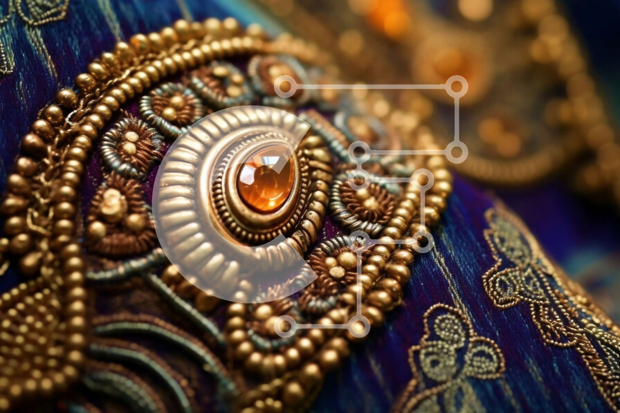 Intra Συλλεκτικό Ξύλινο Παζλ Plywood 4mm - Πολυτελές μπλε και χρυσοκέντητο ύφασμα με περίπλοκα σχέδια Σε Ξύλινο Κουτί - Διαστάσεις Puzzle: 10x10 cm – 25 κομμάτια