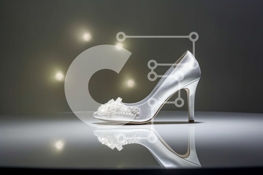 Intra Συλλεκτικό Ξύλινο Παζλ Plywood 4mm - Όμορφη εικόνα λευκού ψηλοτάκουνου παπουτσιού με φιόγκο σε επιφάνεια που μοιάζει με καθρέφτη Σε Ξύλινο Κουτί - Διαστάσεις Puzzle: 10x10 cm – 25 κομμάτια