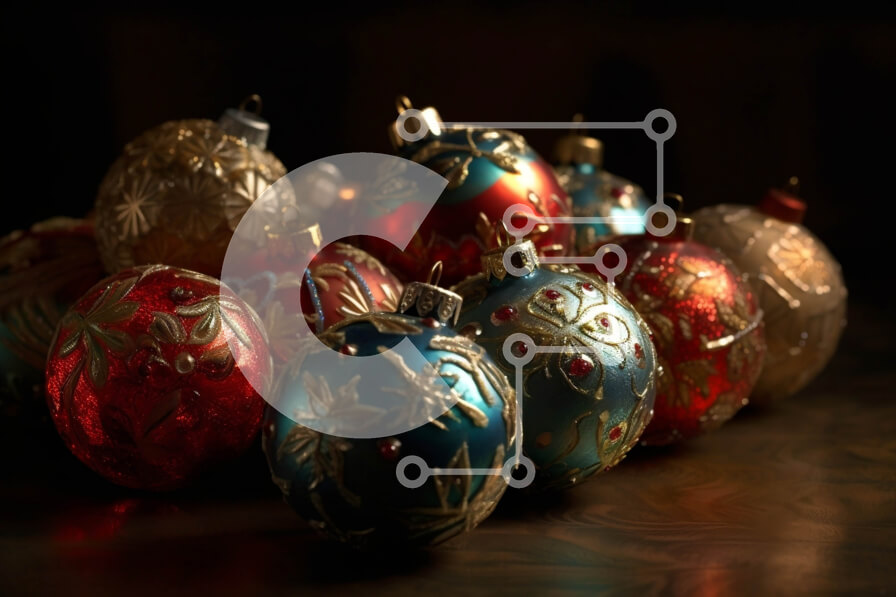 Intra Συλλεκτικό Ξύλινο Παζλ Plywood 4mm - Όμορφη εικόνα με πολύχρωμα χριστουγεννιάτικα στολίδια σε ξύλινη επιφάνεια Σε Ξύλινο Κουτί - Διαστάσεις: 10x10 cm – 25 κομμάτια