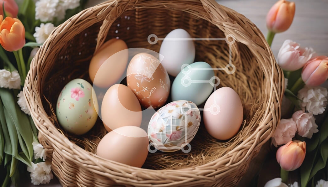 Intra Συλλεκτικό Ξύλινο Παζλ Plywood 4mm - Πασχαλινά αυγά σε ένα καλάθι με λουλούδια Σε Ξύλινο Κουτί - Διαστάσεις: 10x10 cm – 25 κομμάτια