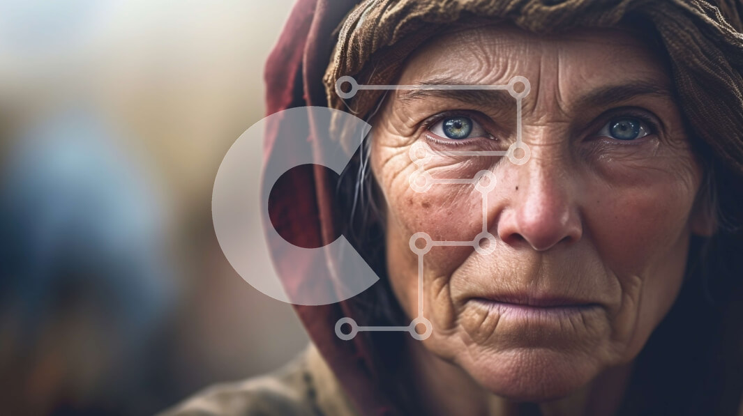 Intra Συλλεκτικό Ξύλινο Παζλ Plywood 4mm - Όμορφο πορτρέτο μιας ηλικιωμένης γυναίκας με διαπεραστικά μπλε μάτια Σε Ξύλινο Κουτί - Διαστάσεις Puzzle: 10x10 cm – 25 κομμάτια