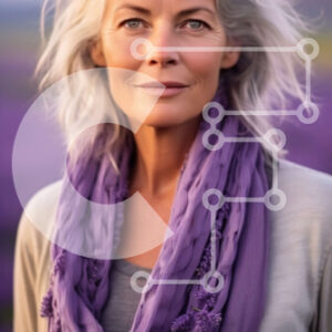 Intra Συλλεκτικό Ξύλινο Παζλ Plywood 4mm - Όμορφο πορτρέτο μιας ηλικιωμένης γυναίκας σε ένα χωράφι με μοβ λουλούδια στο ηλιοβασίλεμα Σε Ξύλινο Κουτί - Διαστάσεις: 10x10 cm – 25 κομμάτια