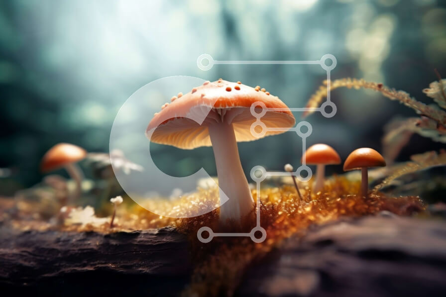 Intra Συλλεκτικό Ξύλινο Παζλ Plywood 4mm - Όμορφη εικόνα με πορτοκαλί μανιτάρια σε ένα κούτσουρο σε ένα δάσος Σε Ξύλινο Κουτί - Διαστάσεις: 10x10 cm – 25 κομμάτια