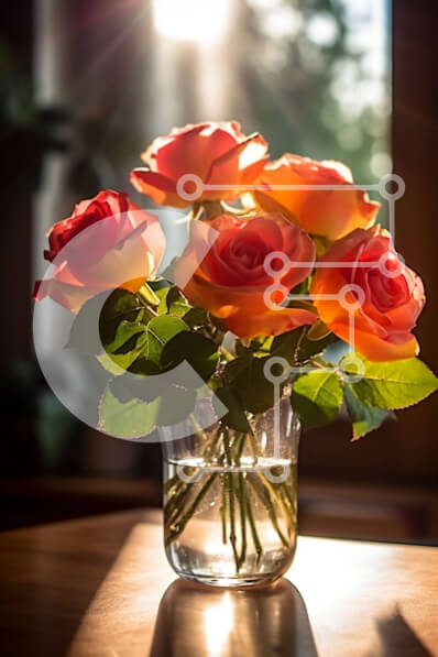 Intra Συλλεκτικό Ξύλινο Παζλ Plywood 4mm - Όμορφη εικόνα με πορτοκαλί τριαντάφυλλα σε βάζο με φως του ήλιου Σε Ξύλινο Κουτί - Διαστάσεις: 10x10 cm – 25 κομμάτια