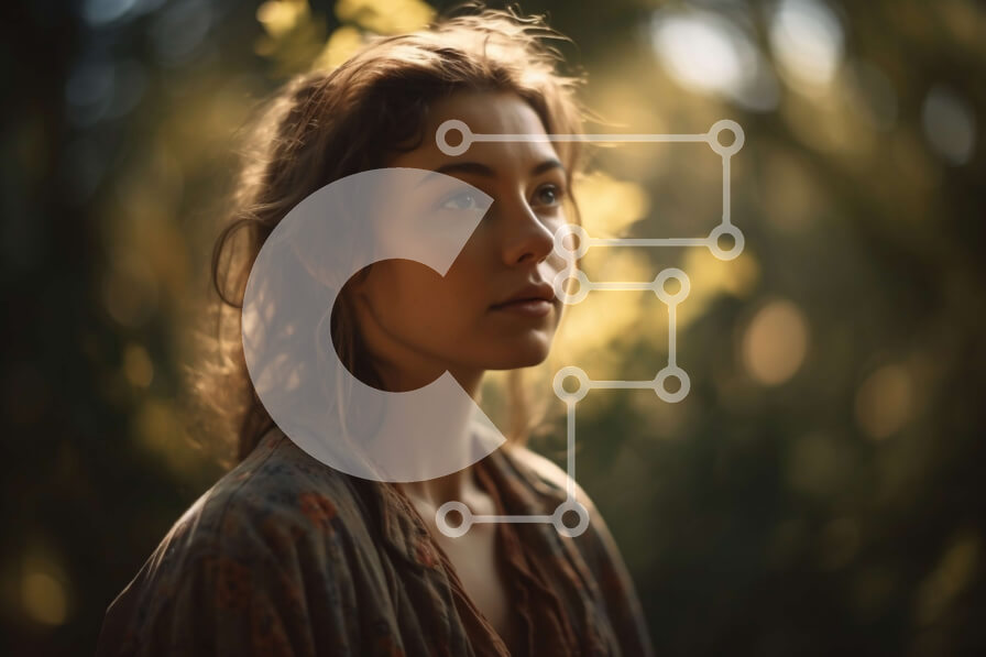 Intra Συλλεκτικό Ξύλινο Παζλ Plywood 4mm - Όμορφη εικόνα μιας γυναίκας χαμένης στις σκέψεις σε ένα καταπράσινο δάσος Σε Ξύλινο Κουτί - Διαστάσεις: 10x10 cm – 25 κομμάτια