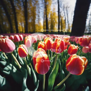 Intra Συλλεκτικό Ξύλινο Παζλ Plywood 4mm - Πεδίο με κόκκινες και κίτρινες τουλίπες με ανθισμένα λουλούδια Σε Ξύλινο Κουτί - Διαστάσεις: 10x10 cm – 25 κομμάτια